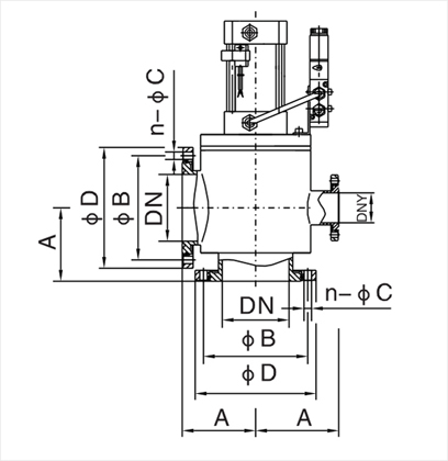 型號 | 通徑(DN) | ΦD | ΦB | A | n-ΦC | DNy(預抽口) | 法蘭標準 |